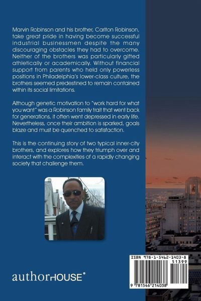 Marvin Robinson and his brother, Carlton Robinson, take great pride in having become successful industrial businessmen despite the many discouraging obstacles they had to overcome. Neither of the brothers was particularly gifted athletically or academically. Without financial support from parents who held only powerless positions in Philadelphia's lower-class culture, the brothers seemed predestined to remain contained within its social limitations. Although genetic motivation to "work hard for what you want" was a Robinson family trait that went back for generations, it often went depressed in early life. Nevertheless, once their ambition is sparked, goals blaze and must be quenched to satisfaction. This is the continuing story of two typical inner-city brothers, and explores how they triumph over and interact with the complexities of a rapidly changing society that challenge them.