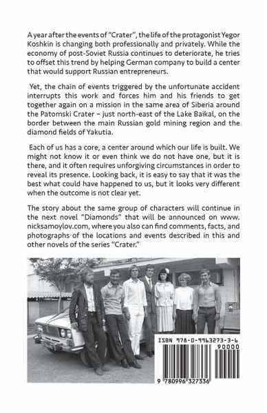 A year after the events of "Crater", the life of the protagonist Yegor Koshkin is changing both professionally and privately. While the economy of post-Soviet Russia continues to deteriorate, he tries to offset this trend by helping German company to build a center that would support Russian entrepreneurs. Yet, the chain of events triggered by the unfortunate accident interrupts this work and forces him and his friends to get together again on a mission in the same area of Siberia around the Patomski Crater - just north-east of the Lake Baikal, on the border between the main Russian gold mining region and the diamond fields of Yakutia. ¿Each of us has a core, a center around which our life is built. We might not know it or even think we do not have one, but it is there, and it often requires unforgiving circumstances in order to reveal its presence. Looking back, it is easy to say that it was the best what could have happened to us, but it looks very different when the outcome is not clear yet. The story about the same group of characters will continue in the next novel "Diamonds" that will be announced on www.nicksamoylov.com, where you also can find comments, facts, and photographs of the locations and events described in this and other novels of the series "Crater."