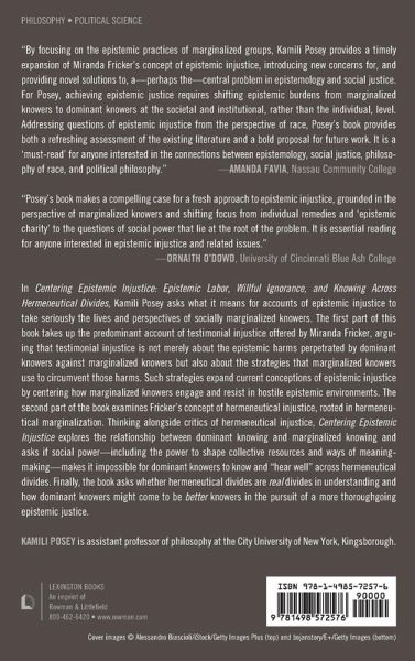 Centering Epistemic Injustice asks what it means for accounts of epistemic injustice to take seriously the lives and perspectives of socially marginalized knowers and the strategies that marginalized knowers use to circumvent persistent testimonial injustice.