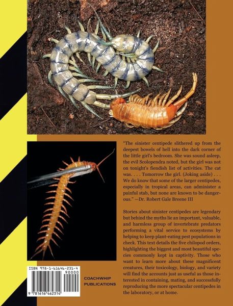 Stories about sinister centipedes are legendary but behind the myths lie an important, valuable, and harmless group of invertebrate predators performing a vital service to ecosystems by helping to keep plant-eating pest populations in check. Orin McMonigle's Centipedes in Captivity details the five chilopod orders, highlighting the biggest and most beautiful species commonly kept in captivity. Those who want to learn more about these magnificent creatures, their toxicology, biology, and variety will find the accounts just as useful as those interested in containing, mating, and successfully reproducing the more spectacular centipedes in the laboratory, or at home.