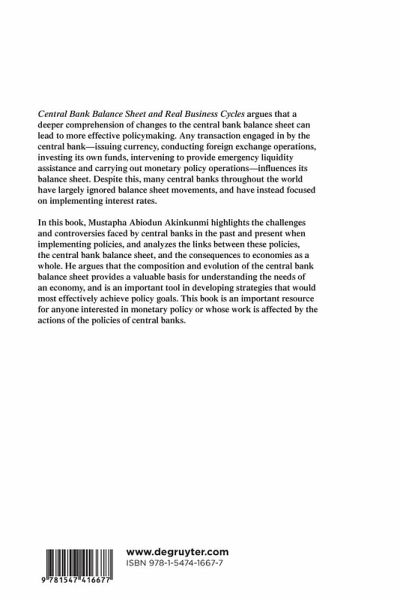 Central Bank Balance Sheet and Real Business Cycles argues that a deeper comprehension of changes to the central bank balance sheet can lead to more effective policymaking. Any transaction engaged in by the central bank-issuing currency, conducting foreign exchange operations, investing its own funds, intervening to provide emergency liquidity assistance and carrying out monetary policy operations-influences its balance sheet. Despite this, many central banks throughout the world have largely ignored balance sheet movements, and have instead focused on implementing interest rates.