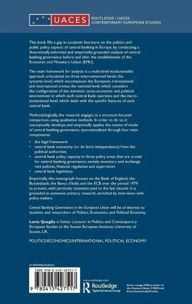 This volume explores the politics and public policy aspects of central banking in Europe through a theoretically-informed and empirically-grounded analysis of central banking governance before and after the establishment of the Economic and Monetary Union.