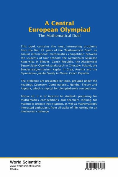 This book contains the most interesting problems from the first 24 years of the "Mathematical Duel", an annual international mathematics competition between the students of four schools: the Gymnázium Mikuláše Koperníka in Bílovec, Czech Republic, the Akademicki Zespó¿ Szkó¿ Ogólnoksztäc¿cych in Chorzów, Poland, the Bundesrealgymnasium Kepler in Graz, Austria and the Gymnázium Jakuba Škody in P¿erov, Czech Republic. The problems are presented by topic, grouped under the headings Geometry, Combinatorics, Number Theory and Algebra, which is typical for olympiad-style competitions. Above all, it is of interest to students preparing for mathematics competitions as well as teachers looking for material to prepare their students, as well as mathematically interested enthusiasts from all walks of life looking for an intellectual challenge.