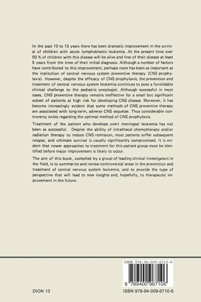 In the past 10 to IS years there has been dramatic improvement in the survival of children with acute lymphoblastic leukemia. At the present time, over 50% of children with this disease will be alive and free of their disease at least 5 years from the time of their initial diagnosis. Although a number of factors have contributed to this improvement, perhaps none has been as important as the institution of central nervous system preventive therapy (eNS prophylaxis). However, despite the efficacy of eNS prophylaxis, the prevention and treatment of central nervous system leukemia continues to pose a formidable clinical challenge to the pediatric oncologist. Although successful in most cases, eNS preventive therapy remains ineffective for a small but significant subset of patients at high risk for developing eNS disease. Moreover, it has become increasingly evident that some methods of eNS preventive therapy are associated with long-term, adverse eNS sequelae. Thus, considerable controversy exists regarding the optimal method of eNS prophylaxis. Treatment of the patient who develops overt meningeal leukemia has not been as successful and continues to pose a major clinical challenge. Despite the ability of intrathecal chemotherapy and/or radiation therapy to induce eNS remission, most patients suffer subsequent relapse and ultimate survival is usually signifi cantly compromised. It is evident that newer approaches to treatment for this patient group must be identified before major improvement for this patient group is likely to occur.