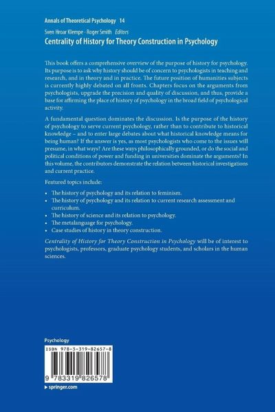 Part I: Theory and Practice.- Chapter 1. History of Psychology - What For?.- Chapter 2. The Universal and the Particular in Psychology and the Role of History in Examining Both.- Chapter 3. Six Meanings of the History of Science: The Case of Psychology.- Chapter 4. Beyond the "Variables": Developing Metalanguage for Psychology.- Chapter 5. The Shackles of Practice: History of Psychology, Research Assessment, and the Curriculum.- Chapter 6. History for "Polycentric" Psychological Science: An "Outsider's Case".- Part II: History At Work.- Chapter 7. The Dominant as a Model Chronogenic Challenge: The Relevance of A.A. Ukhtomsky's and L.S. Vygotsky's Traditions for Systemic Cognitive Studies.- Chapter 8. Constructiveness in the History of Psychology: Bartlett from Past to Future.- Chapter 9. A History of Psychology's Complicated Relationship to Feminism: Theorizing Difference.- Chapter 10. Autonomy, Theory, and "Applied" versus "Basic": Work Psychology and Its Search for Identity in Finland, ca. 195 - 2000.- Chapter 11. Subjectivity in the History of Psychology - A Systematic or a Historical Change?.- Part III: Commentary.- Chapter 12. Commentary I: Functions and Trends in the History of Psychology.- Chapter 13. Commentary II: The Past and the History of Psychology.