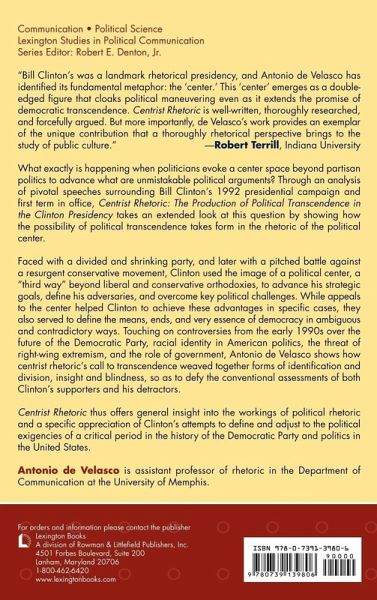 Focused on the centrist rhetoric of President Bill Clinton, Centrist Rhetoric explores questions about the basic nature and function of pleas to transcend partisan division. Using close textual analysis in the context of a broader theoretical argument about rhetoric, democracy, and transcendence, this book promises a fresh approach to dealing with the contradictions inherent to using the center as a political metaphor.