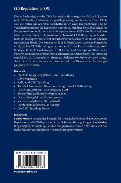 Dieses Buch zeigt, wie die CEO-Reputation als strategischer Faktor in kleinen und mittelgroßen Unternehmen gezielt gemanagt werden kann. Denn CEOs sind die ersten und obersten Botschafter:innen eines Unternehmens und ihr Verhalten beeinflusst die Reputation wesentlich. Mit ihrer Persönlichkeit, ihrer Kommunikation und ihrem Auftritt repräsentieren CEOs das Unternehmen nach innen und außen - bewusst und unbewusst. CEO-Branding sollte daher nicht als zufälliger Nebeneffekt betrachtet werden, sondern als entscheidender strategischer Hebel. Die Autorin hat fünf Erfolgsfaktoren und eine Formel für erfolgreiches CEO-Branding entwickelt und in der Praxis vielfach erprobt: Strategie, Persönlichkeit, Kongruenz, Botschaft und Konzept. Auf Basis dieser Faktoren lässt sich ein strukturiertes, zielführendes und messbares CEO-Branding entwickeln, das Unternehmen einen nachhaltigen Wettbewerbsvorteil bringt. Außerdem: Experteninterviews zeigen auf, wie das Thema in der Praxis angegangen werden muss.
