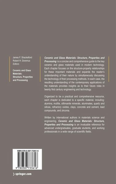Written by international authors in materials science and engineering, Ceramic and Glass Materials: Structure, Propertiesand Processing is an invaluable reference for advanced undergraduates, graduate students, and working professionals in a wide range of scientific fields.