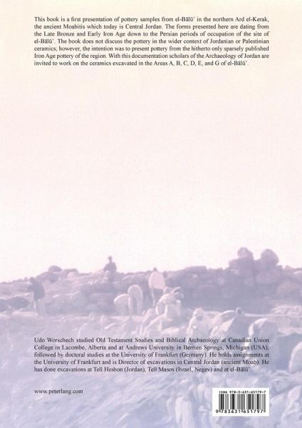 This book is a first presentation of pottery samples from el-Balu in the northern Ard el-Kerak, the ancient Moabitis which today is Central Jordan. The forms presented here are dating from the Late Bronze and Early Iron Age down to the Persian periods of occupation of the site of el-Balu . The book does not discuss the pottery in the wider context of Jordanian or Palestinian ceramics; however, the intention was to present pottery from the hitherto only sparsely published Iron Age pottery of the region. With this documentation scholars of the Archaeology of Jordan are invited to work on the ceramics excavated in the Areas A, B, C, D, E, and G of el-Balu .