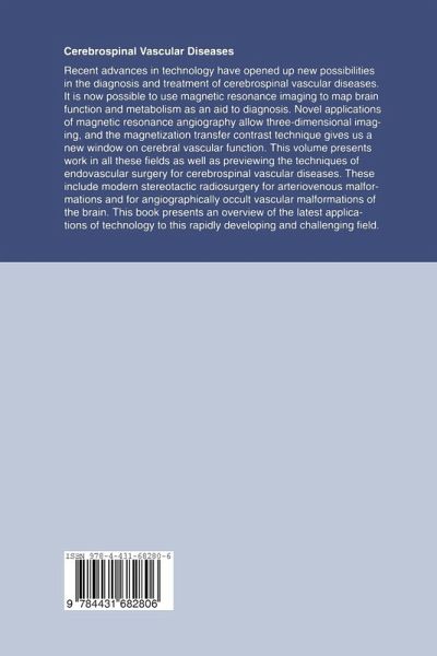 Recent advances in technology have opened up new possibilities in the diagnosis and treatment of cerebrospinal vascular diseases. It is now possible to use magnetic resonance imaging to map brain function and metabolism as an aid to diagnosis. Novel applications of magnetic resonance angiography allow three-dimensional imaging, and the magnetization transfer contrast technique gives us a new window on cerebral vascular function. This volume presents work in all these fields as well as previewing the techniques of endovascular surgery for cerebrospinal vascular diseases. These include modern stereotactic radiosurgery for arteriovenous malformations and for angiographically occult vascular malformations of the brain. This book presents an overview of the latest applications of technology to this rapidly developing and challenging field.