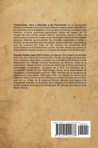 El libro de las Comidas (ceremonias, ritos y ofrendas) a las Posiciones es un documento excepcional donde se pormenoriza la relación ceremonial de Osha-Ifá con los elementos de la naturaleza, como el viento, el arcoiris, los astros y las estrellas, la lluvia; posiciones geográficas; partes del cuerpo, etc. El usuario de este tratado puede también encontrar lugares y sitios de repercusión social en los cuales el uso del espacio tiene una connotación religiosa. Además se encuentran las ofrendas especiales a Oshas y Orishas. Evidentemente este documento aporta parte del conocimiento que se conservó en Cuba en los círculos de sacerdotes más conservadores de las tradiciones Lucumí. En este tratado se muestra la diversidad del espacio ritual en el contexto de ceremonias de Osha-Ifá.