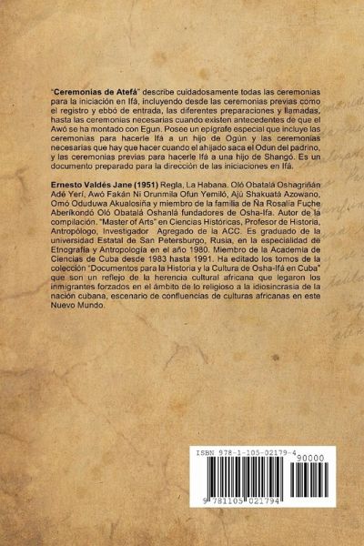 El libro de las ceremonias de Atefá describe cuidadosamente todas las ceremonias para la iniciación en Ifá, incluyendo desde las ceremonias previas como el registro y ebbó de entrada, las diferentes preparaciones y llamadas, hasta las ceremonias necesarias cuando existen antecedentes de que el Awó se ha montado con Egun. Posee un epígrafe especial que incluye las ceremonias para hacerle Ifá a un hijo de Ogún y las ceremonias necesarias que hay que hacer cuando el ahijado saca el Odun del padrino, y las ceremonias previas para hacerle Ifá a una hijo de Shangó. Es un documento preparado para la dirección de las iniciaciones en Ifá.