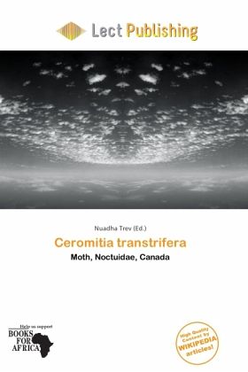 Please note that the content of this book primarily consists of articles available from Wikipedia or other free sources online. Ceromitia transtrifera is a species of moth of the Adelidae family. It is known from South Africa. A moth is an insect closely related to the butterfly, both being of the order Lepidoptera. Moths form the majority of this order; there are thought to be 150,000 to 250,000 different species of moth (about ten times the number of species of butterfly), with thousands of species yet to be described.Most species of moth are nocturnal, but there are crepuscular and diurnal species.