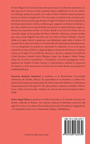 Si bien Miguel de Cervantes Saavedra jamás pisó el continente americano, se sabe que por lo menos en dos ocasiones buscó establecerse en él. Su anhelo, sin embargo, jamás se concretó. Con todo, el Nuevo Mundo cautivó poderosamente su interés e imaginación. Por una parte, el alcalaíno fue un lector puntual de los diversos textos que durante el siglo XVI dieron fe de la conquista de las tierras americanas y de los conflictos que surgieron en dichos territorios; y, por otra, América tuvo para él desde muy joven un interés literario, según se deduce de su primera novela, La Galatea, donde en el Canto de Calíope hace un conocido elogio de los poetas del Nuevo Mundo. Asimismo, precisa señalar que muy pronto llegaron las obras de Cervantes al Nuevo Mundo y fueron leídas con sumo interés y gusto por sus habitantes, sobre todo el Quijote. El impacto de la obra cervantina en el desarrollo de la literatura latinoamericana y en su imaginario no puede ser subrayado lo suficiente. Si ya enla época colonial Cervantes influyó en algunas figuras señeras de las letras en América Latina, en el siglo XX su huella fue decisiva y alcanzó a autores de la talla de Carlos Fuentes, Gabriel García Márquez, Jorge Luis Borges o Mario Vargas Llosa. En Cervantes transatlántico / Transatlantic Cervantes prestigiosos investigadores de Estados Unidos, Europa y Latinoamérica estudian la presencia de América y de lo americano en la obra de Cervantes desde una perspectiva multidisciplinaria.