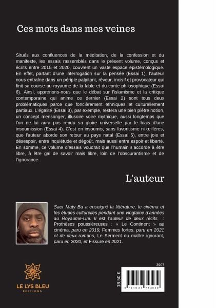Situés aux confluences de la méditation, de la confession et du manifeste, les essais rassemblés dans le présent volume, conçus et écrits entre 2015 et 2020, couvrent un vaste espace épistémologique. En effet, partant d¿une interrogation sur la pensée (Essai 1), l¿auteur nous entraîne dans un périple palpitant, rêveur, incisif et provocateur qui finit sa course au royaume de la fable et du conte philosophique (Essai 6). Ainsi, apprenons-nous que le débat sur l¿islamisme et la critique contemporaine qui anime ce dernier (Essai 2) sont tous deux problématiques parce que foncièrement ethniques et culturellement partiaux. L¿égalité (Essai 3), par exemple, restera une bien piètre notion, un concept mensonger, illusoire voire mythique, aussi longtemps que l¿on ne lui aura pas rendu sa gloire universelle par le biais d¿une insoumission (Essai 4). C¿est en insoumis, sans favoritisme ni ¿illères, que l¿auteur aborde son retour au pays natal (Essai 5), entre joie et désespoir, entre inquiétude et dégoût, mais aussi entre espoir et liberté. En somme, ce volume d¿essais voudrait que l¿humain s¿accorde à être libre, à être gai de savoir mais libre, loin de l¿obscurantisme et de l¿ignorance.