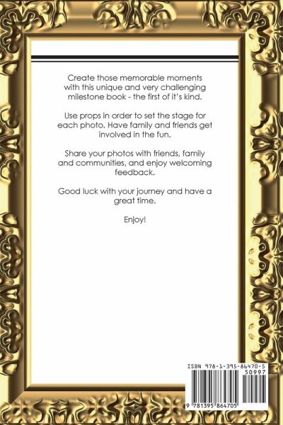 Create those memorable moments with this unique and very challenging milestone book - the first of it's kind. Use props in order to set the stage for each photo. Have family and friends get involved in the fun. Share your photos with friends, family and communities, and enjoy welcoming feedback. Good luck with your journey and have a great time. Enjoy!