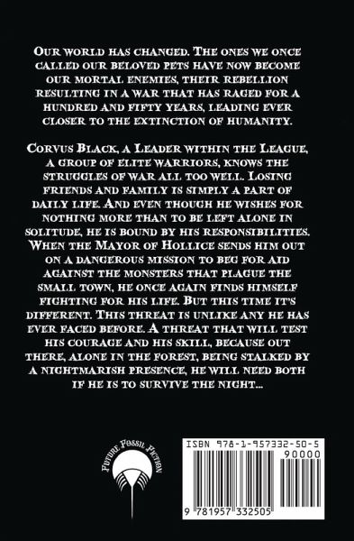 Our world has changed. The ones we once called our beloved pets have now become our mortal enemies, their rebellion resulting in a war that has raged for a hundred and fifty years, leading ever closer to the extinction of humanity.Corvus Black, a Leader within the League, a group of elite warriors, knows the struggles of war all too well. Losing friends and family is simply a part of daily life. And even though he wishes for nothing more than to be left alone in solitude, he is bound by his responsibilities. When the Mayor of Hollice sends him out on a dangerous mission to beg for aid against the monsters that plague the small town, he once again finds himself fighting for his life. But this time it's different. This threat is unlike any he has ever faced before. A threat that will test his courage and his skill, because out there, alone in the forest, being stalked by a nightmarish presence, he will need both if he is to survive the night...