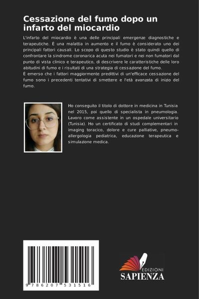 L'infarto del miocardio è una delle principali emergenze diagnostiche e terapeutiche. È una malattia in aumento e il fumo è considerato uno dei principali fattori causali. Lo scopo di questo studio è stato quindi quello di confrontare la sindrome coronarica acuta nei fumatori e nei non fumatori dal punto di vista clinico e terapeutico, di descrivere le caratteristiche delle loro abitudini di fumo e i risultati di una strategia di cessazione del fumo.È emerso che i fattori maggiormente predittivi di un'efficace cessazione del fumo sono i precedenti tentativi di smettere e l'età avanzata di inizio del fumo.