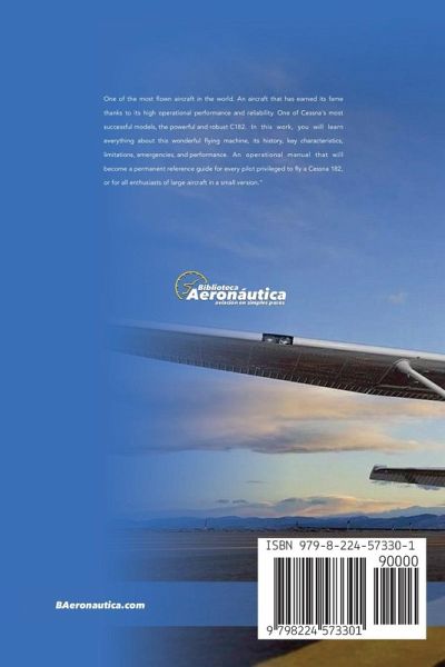 One of the most flown aircraft in the world. An aircraft that has earned its fame thanks to its high operational performance and reliability. One of Cessna's most successful models, the powerful and robust C182. In this work, you will learn everything about this wonderful flying machine, its history, key characteristics, limitations, emergencies, and performance. An operational manual that will become a permanent reference guide for every pilot privileged to fly a Cessna 182, or for all enthusiasts of large aircraft in a small version.