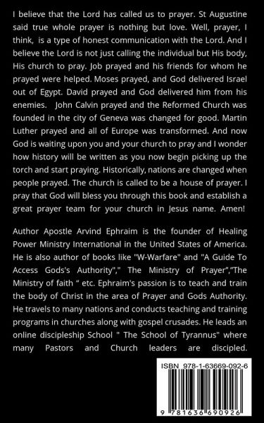 I believe that the Lord has called us to prayer. St Augustine said true whole prayer is nothing but love. Well, prayer, I think, is a type of honest communication with the Lord. And I believe the Lord is not just calling the individual but His body, His church to pray. Job prayed and his friends for whom he prayed were helped, and he even found deliverance. Moses prayed, and God delivered Israel out of Egypt. David prayed and God delivered him from his enemies. John Calvin prayed and the Reformed Church was founded in the city of Geneva was changed for good. Martin Luther prayed and all of Europe was transformed. John Knox prayed and Scotland came to its knees. Hudson Taylor prayed and scores of missionaries went to China and opened up the gospel message in China. William Carey prayed and God sent him to India, and he translated the Bible into more than 30 different languages and dialects. And now God is waiting upon you and your church to pray and I wonder how history will be written as you now begin picking up the torch and start praying. Historically, nations are changed when people prayed. The church is called to be a house of prayer. I pray that God will bless you through this book and establish a great prayer team for your church in Jesus' name. Amen!