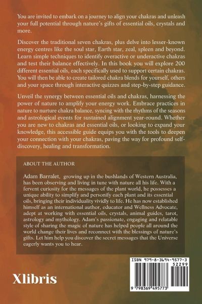 You are invited to embark on a journey to align your chakras and unleash your full potential through nature's gifts of essential oils, crystals and more. Discover the traditional seven chakras, plus delve into lesser-known energy centres like the soul star, Earth star, zeal, spleen and beyond. Learn simple techniques to identify overactive or underactive chakras and test their balance effectively. In this book you will explore 200 different essential oils, each specifically used to support certain chakras. You will then be able to create tailored chakra blends for yourself, others and your space through interactive quizzes and step-by-step guidance. Unveil the synergy between essential oils and chakras, harnessing the power of nature to amplify your energy work. Embrace practices in nature to nurture chakra balance, syncing with the rhythms of the seasons and astrological events for sustained alignment year-round. Whether you are new to chakras and essential oils, or looking to expand your knowledge, this accessible guide equips you with the tools to deepen your connection with your chakras, paving the way for profound selfdiscovery, healing and transformation.