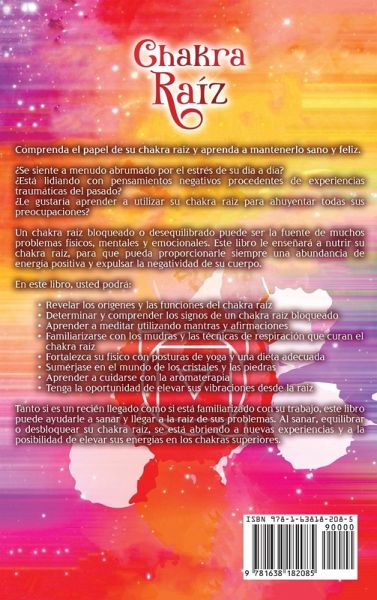 Comprenda el papel de su chakra raíz y aprenda a mantenerlo sano y feliz. ¿Se siente a menudo abrumado por el estrés de su día a día? ¿Está lidiando con pensamientos negativos procedentes de experiencias traumáticas del pasado? ¿Le gustaría aprender a utilizar su chakra raíz para ahuyentar todas sus preocupaciones? Un chakra raíz bloqueado o desequilibrado puede ser la fuente de muchos problemas físicos, mentales y emocionales. Este libro le enseñará a nutrir su chakra raíz, para que pueda proporcionarle siempre una abundancia de energía positiva y expulsar la negatividad de su cuerpo. En este libro, usted podrá:Revelar los orígenes y las funciones del chakra raíz Determinar y comprender los signos de un chakra raíz bloqueado Aprender a meditar utilizando mantras y afirmaciones Familiarizarse con los mudras y las técnicas de respiración que curan el chakra raíz Fortalezca su físico con posturas de yoga y una dieta adecuada Sumérjase en el mundo de los cristales y las piedras Aprender a cuidarse con la aromaterapia Tenga la oportunidad de elevar sus vibraciones desde la raíz Tanto si es un recién llegado como si está familiarizado con su trabajo, este libro puede ayudarle a sanar y llegar a la raíz de sus problemas. Al sanar, equilibrar o desbloquear su chakra raíz, se está abriendo a nuevas experiencias y a la posibilidad de elevar sus energías en los chakras superiores. Haga clic en el botón "añadir a la cesta" ahora y aventúrese en el asombroso mundo del chakra raíz.