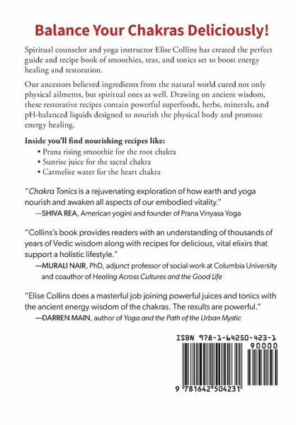 Spiritual counselor and yoga instructor Elise Collins has created the perfect guide and recipe book of smoothies, teas, and tonics to boost your energy centers.