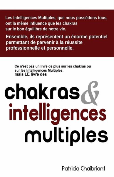Vivez votre vie au lieu de la subir en apprenant à utiliser vos intelligences pour contrôler le fonctionnement de vos chakras. Les problèmes provoqués par les chakras peuvent être résolus en développant les intelligences multiples que nous possédons tous. Vous pouvez ainsi, de manière concrète, retrouver un équilibre dans votre vie privée, sentimentale, familiale et professionnelle, reprendre confiance en vous et en vos capacités, ne plus souffrir de la peur, de phobies, d'anxiété et d'enfin apprécier votre vie ! Ce livre vous explique de façon simple, claire et détaillée le fonctionnement des chakras et de chacune des intelligences multiples décrites par Howard Gardner ainsi que leur utilisation pour équilibrer et harmoniser vos chakras. Si vous n'osez plus affronter votre quotidien et ne parvenez pas à trouver la cause de votre mal être, ce livre est fait pour vous !