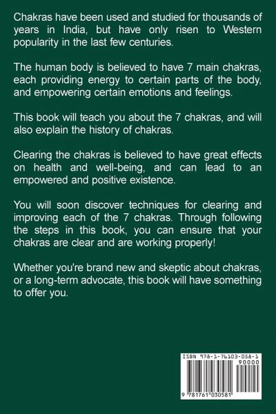 CHAKRAS Chakras have been used and studied for thousands of years in India, but have only risen to Western popularity in the last few centuries. The human body is believed to have 7 main chakras, each providing energy to certain parts of the body, and empowering certain emotions and feelings. This book will teach you about the 7 chakras, and will also explain the history of chakras. Clearing the chakras is believed to have great effects on health and well-being, and can lead to an empowered and positive existence. You will soon discover techniques for clearing and improving each of the 7 chakras. Through following the steps in this book, you can ensure that your chakras are clear and are working properly! Whether you're brand new and skeptic about chakras, or a long-term advocate, this book will have something to offer you. Here Is What You'll Learn About... History of Chakras Root Chakra Sacral Chakra Solar Plexus Chakra Heart Chakra Throat Chakra Third Eye Chakra Crown Chakra Much, much more!