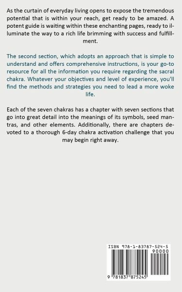 As the curtain of everyday living opens to expose the tremendous potential that is within your reach, get ready to be amazed. A potent guide is waiting within these enchanting pages, ready to illuminate the way to a rich life brimming with success and fulfillment. The second section, which adopts an approach that is simple to understand and offers comprehensive instructions, is your go-to resource for all the information you require regarding the sacral chakra. Whatever your objectives and level of experience, you'll find the methods and strategies you need to lead a more woke life. Each of the seven chakras has a chapter with seven sections that go into great detail into the meanings of its symbols, seed mantras, and other elements. Additionally, there are chapters devoted to a thorough 6-day chakra activation challenge that you may begin right away.