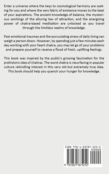 Enter a universe where the keys to cosmological harmony are waiting for you and where the very fabric of existence moves to the beat of your aspirations. The ancient knowledge of balance, the mysterious workings of the alluring law of attraction, and the energizing power of chakra-based meditation are unlocked as you travel through the limitless realms of knowledge. Past emotional traumas and the excruciating stress of daily living can weigh a person down. However, by spending just a few minutes each day working with your heart chakra, you may let go of your problems and prepare yourself to receive a flood of fresh, uplifting feelings. This book was inspired by the public's growing fascination for the prehistoric idea of chakras. The word chakra is resurfacing in popular culture rekindling interest in this very old but extremely true idea. This book should help you quench your hunger for knowledge.