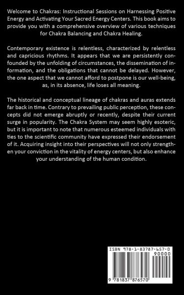 Welcome to Chakras: Instructional Sessions on Harnessing Positive Energy and Activating Your Sacred Energy Centers. This book aims to provide you with a comprehensive overview of various techniques for Chakra Balancing and Chakra Healing. Contemporary existence is relentless, characterized by relentless and capricious rhythms. It appears that we are persistently confounded by the unfolding of circumstances, the dissemination of information, and the obligations that cannot be delayed. However, the one aspect that we cannot afford to postpone is our well-being, as, in its absence, life loses all meaning. The historical and conceptual lineage of chakras and auras extends far back in time. Contrary to prevailing public perception, these concepts did not emerge abruptly or recently, despite their current surge in popularity. The Chakra System may seem highly esoteric, but it is important to note that numerous esteemed individuals with ties to the scientific community have expressed their endorsement of it. Acquiring insight into their perspectives will not only strengthen your conviction in the vitality of energy centers, but also enhance your understanding of the human condition.
