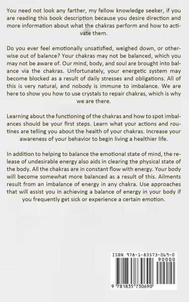 You need not look any farther, my fellow knowledge seeker, if you are reading this book description because you desire direction and more information about what the chakras perform and how to activate them. Do you ever feel emotionally unsatisfied, weighed down, or otherwise out of balance? Your chakras may not be balanced, which you may not be aware of. Our mind, body, and soul are brought into balance via the chakras. Unfortunately, your energetic system may become blocked as a result of daily stresses and obligations. All of this is very natural, and nobody is immune to imbalance. We are here to show you how to use crystals to repair chakras, which is why we are there. Learning about the functioning of the chakras and how to spot imbalances should be your first steps. Learn what your actions and routines are telling you about the health of your chakras. Increase your awareness of your behavior to begin living a healthier life. In addition to helping to balance the emotional state of mind, the release of undesirable energy also aids in clearing the physical state of the body. All the chakras are in constant flow with energy. Your body will become somewhat more balanced as a result of this. Ailments result from an imbalance of energy in any chakra. Use approaches that will assist you in achieving a balance of energy in your body if you frequently get sick or experience a certain emotion.