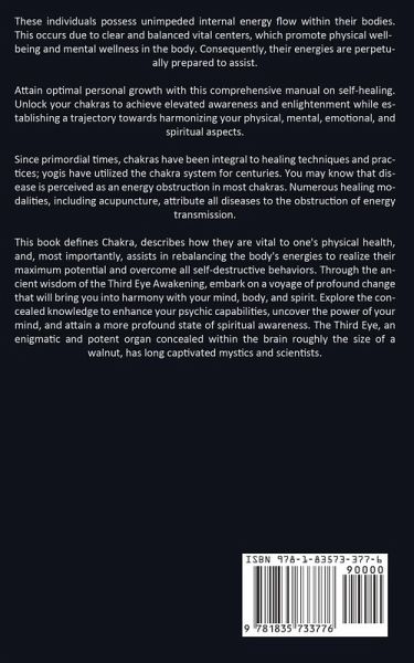 These individuals possess unimpeded internal energy flow within their bodies. This occurs due to clear and balanced vital centers, which promote physical well-being and mental wellness in the body. Consequently, their energies are perpetually prepared to assist. Attain optimal personal growth with this comprehensive manual on self-healing. Unlock your chakras to achieve elevated awareness and enlightenment while establishing a trajectory towards harmonizing your physical, mental, emotional, and spiritual aspects. Since primordial times, chakras have been integral to healing techniques and practices; yogis have utilized the chakra system for centuries. You may know that disease is perceived as an energy obstruction in most chakras. Numerous healing modalities, including acupuncture, attribute all diseases to the obstruction of energy transmission. This book defines Chakra, describes how they are vital to one's physical health, and, most importantly, assists in rebalancing the body's energies to realize their maximum potential and overcome all self-destructive behaviors. Through the ancient wisdom of the Third Eye Awakening, embark on a voyage of profound change that will bring you into harmony with your mind, body, and spirit. Explore the concealed knowledge to enhance your psychic capabilities, uncover the power of your mind, and attain a more profound state of spiritual awareness. The Third Eye, an enigmatic and potent organ concealed within the brain roughly the size of a walnut, has long captivated mystics and scientists.