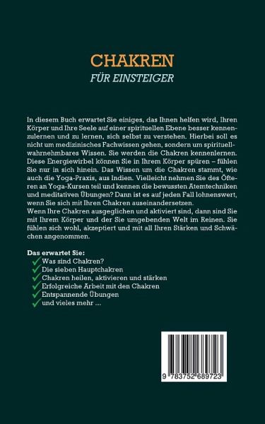 In diesem Buch erwartet Sie einiges, das Ihnen helfen wird, Ihren Körper und Ihre Seele auf einer spirituellen Ebene besser kennenzulernen und zu lernen, sich selbst zu verstehen. Hierbei soll es nicht um medizinisches Fachwissen gehen, sondern um spirituell-wahrnehmbares Wissen. Sie werden die Chakren kennenlernen. Diese Energiewirbel können Sie in Ihrem Körper spüren - fühlen Sie nur in sich hinein. Das Wissen um die Chakren stammt, wie auch die Yoga-Praxis, aus Indien. Vielleicht nehmen Sie des Öfteren an Yoga-Kursen teil und kennen die bewussten Atemtechniken und meditativen Übungen? Dann ist es auf jeden Fall lohnenswert, wenn Sie sich mit Ihren Chakren auseinandersetzen. Wenn Ihre Chakren ausgeglichen und aktiviert sind, dann sind Sie mit Ihrem Körper und der Sie umgebenden Welt im Reinen. Sie fühlen sich wohl, akzeptiert und mit all Ihren Stärken und Schwächen angenommen.Das erwartet Sie:-Was sind Chakren?-Die sieben Hauptchakren-Chakren heilen, aktivieren und stärken-Erfolgreiche Arbeit mit den Chakren-Entspannende Übungen-und vieles mehr ...