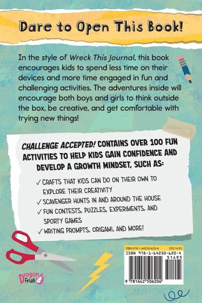 Help Your Kids Unplug and Challenge Their Creativity with Fun Things To Do! (Ages 6-8) "Parven Kaur is a mom and writer who focuses on Internet safety and digital literacy. Her blog, Kids N Clicks offers sound advice and recommendations on all things related to digital and screen media for parents." Amy Web of The Thoughtful Parent This activity book in the style of “wreck this journal” for kids encourages children ages 6-8 to spend less time on their devices, and more time engaged in fun and challenging activities. Fuel your child's creativity. This hybrid kid’s activity book and creative journal is filled to the brim with challenges and prompts that promote positivity, while also developing your child’s mindfulness and creativity. The book cultivates a growth mindset for kids―encouraging them to think outside the box and be creative, while developing their ability to learn new things. Screen-free entertainment. Your child won’t want to put this book down. From a scavenger hunt of household items, to coloring-in illustrations and puzzles, this adventurous book is crafted to give your child a digital detox. They’ll want to pick-up this book and do more challenging and fun activities, instead of sitting down in front of a screen. Unlike TV and video games, this book benefits your child:Building their confidence by encouraging them to try new things Promoting mindfulness, positivity, and self-reflection with creative journal prompts Growing their self-esteem by keeping them active and engaged in learning with challenges, crafts, and more! If your kids enjoyed books like Growth Mindset Activities for Kids; Learn, Grow, Succeed!; or You Got This, then they’ll love Challenge Accepted!