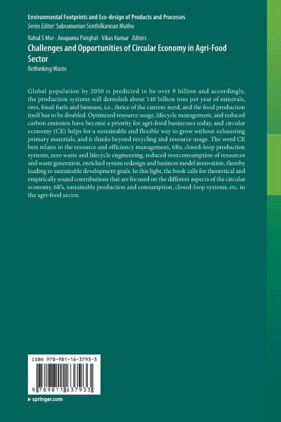 Global population by 2050 is predicted to be over 9 billion and accordingly, the production systems will demolish about 140 billion tons per year of minerals, ores, fossil fuels and biomass, i.e., thrice of the current need, and the food production itself has to be doubled. Optimized resource usage, lifecycle management, and reduced carbon emission have become a priority for agri-food businesses today, and circular economy (CE) helps for a sustainable and flexible way to grow without exhausting primary materials, and it thinks beyond recycling and resource usage. The word CE best relates to the resource and efficiency management, 6Rs, closed-loop production systems, zero waste and lifecycle engineering, reduced overconsumption of resources and waste generation, enriched system redesign and business model innovation, thereby leading to sustainable development goals. In this light, the book calls for theoretical and empirically sound contributions that are focused on the different aspects of the circular economy, 6R's, sustainable production and consumption, closed-loop systems, etc. in the agri-food sector.