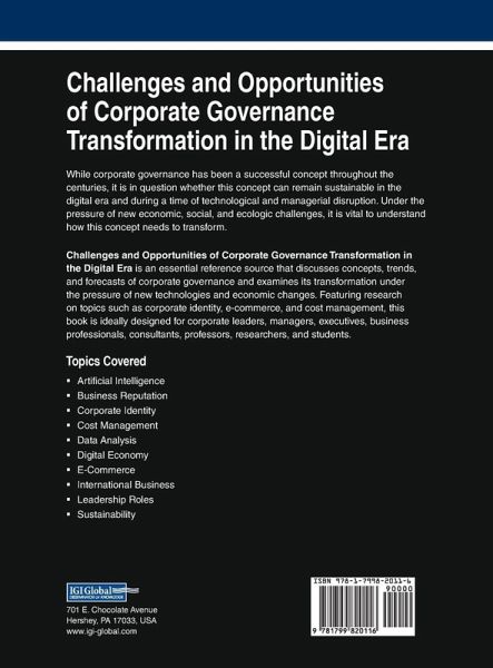 Discusses concepts, trends, and forecasts of corporate governance and examines its transformation under the pressure of new technologies and economic changes. The book features research on a range of topics, including corporate identity, e-commerce, and cost management.