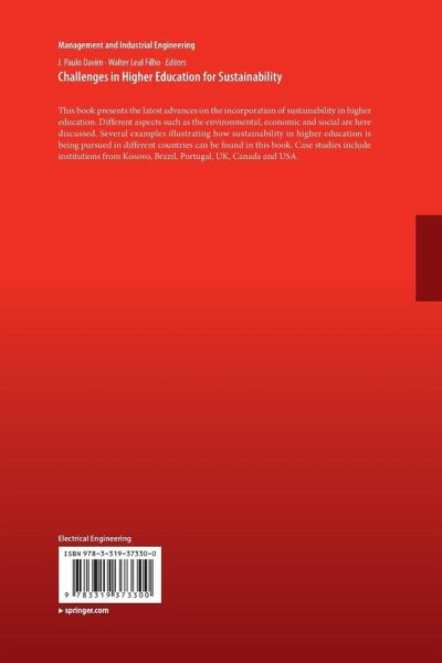 This book presents the latest advances on the incorporation of sustainability in higher education. Different aspects such as the environmental, economic and social are here discussed. Several examples illustrating how sustainability in higher education is being pursued in different countries can be found in this book. Case studies include institutions from Kosovo, Brazil, Portugal, UK, Canada and USA.