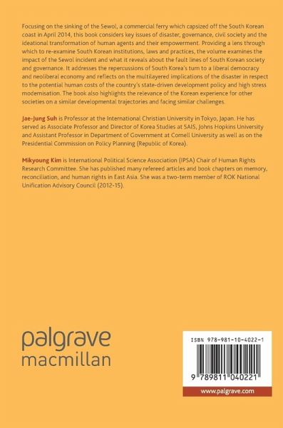 Introduction: Sinking the Sewol, Drowning Korea? Compressed Modernization and Compounded Risks.- The Sewol Disaster: Predictable Consequences of Neoliberal Deregulation.- Institutionalized Irresponsibility: Understanding the Sewol Disaster from the Perspective of the Addictive Organization Theory.- National Crisis and Democratic Consolidation in South Korea.- Capturing Collusion: The Industry and the Government in Ferry Safety Regulation.- "Stay Still": Sewol, a Tale of Fatal Censorship, Fatal Paternalism.- Disciplining High School Students and Molding Their Subjectivity in South Korea: a Shift in Disciplinary Paradigm.- Foreign to Disaster or New Point of Solidarity? A Vietnamese Victim Family in the Sewol Aftermaths.- From Passive Citizens to Resistant Subjects: The Sewol Families Stand Up to the State.- Epilogue: The Wreck of the Sewol.