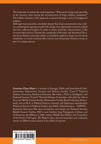 The book aims to answer the central question: "What went wrong, more precisely, in the decision chain during the reconstruction of Iraq's military institution?" The holistic character of the approach is ensured through a series of background analyses.