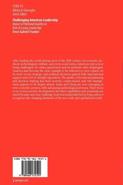 After leading the world during most of the 20th century in economic, political, technological, military, and even social terms, America's role is now being challenged. Its values questioned, and its methods often disparaged, America had become the clear example to be followed or even copied, yet its more recent strategic and political decisions gained little international support and a lot of outright opposition. The quality of its national planning and decision making has been severely compromised, and risk management appears to be largely absent. India and China are now emerging as new economic powers, with advancing technological prowess. Their focus is on socioeconomic development, but their capabilities and potentials are much broader and may challenge America's leadership before long, unless it recognizes the changing demands of the new wide open globalized world.