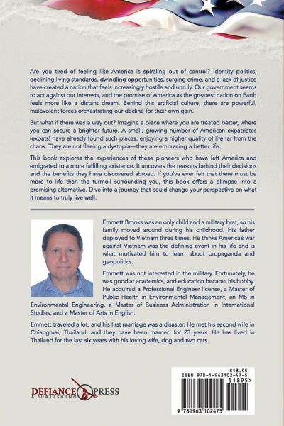 Are you tired of feeling like America is spiraling out of control? Identity politics, declining living standards, dwindling opportunities, surging crime, and a lack of justice have created a nation that feels increasingly hostile and unruly. Our government seems to act against our interests, and the promise of America as the greatest nation on Earth feels more like a distant dream. Behind this artificial culture, there are powerful, malevolent forces orchestrating our decline for their own gain. But what if there was a way out? Imagine a place where you are treated better, where you can secure a brighter future. A small, growing number of American expatriates (expats) have already found such places, enjoying a higher quality of life far from the chaos. They are not fleeing a dystopia-they are embracing a better life. This book explores the experiences of these pioneers who have left America and emigrated to a more fulfilling existence. It uncovers the reasons behind their decisions and the benefits they have discovered abroad. If you've ever felt that there must be more to life than the turmoil surrounding you, this book offers a glimpse into a promising alternative. Dive into a journey that could change your perspective on what it means to truly live well.