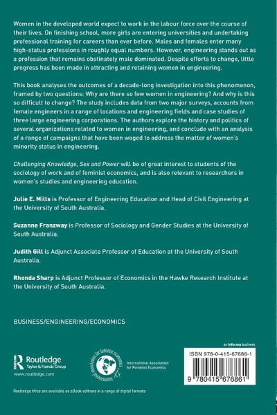 Women in the developed world expect to work in the labour force over the course of their lives. On finishing school more girls are entering universities and undertaking professional training for careers than ever before. Males and females enter many high status professions in roughly equal numbers. However, engineering stands out as a profession that remains obstinately male dominated. Despite efforts to change, little progress has been made in attracting and retaining women in engineering. This book analyses the outcomes of a decade-long investigation into this phenomenon, framed by two questions: Why are there so few women in engineering? And why is this so difficult to change? The study includes data from two major surveys, accounts from female engineers in a range of locations and engineering fields, and case studies of three large engineering corporations. The authors explore the history and politics of several organisations related to women in engineering, and conclude with an analysis of a range of campaigns that have been waged to address the issue of women's minority status in engineering. Challenging Knowledge, Sex and Power will be of great interest to students of feminist economics, and is also relevant to researchers in women's studies and engineering education.