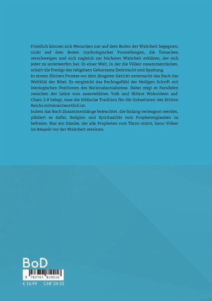 Friedlich können sich Menschen nur auf dem Boden der Wahrheit begegnen; nicht auf dem Boden mythologischer Vorstellungen, die Tatsachen verschweigen und sich zugleich zur höchsten Wahrheit erklären, der sich jeder zu unterwerfen hat. In einer Welt, in der die Völker zusammenrücken, schürt die Predigt des religiösen Gehorsams Zwietracht und Spaltung.In einem fiktiven Prozess vor dem Jüngsten Gericht untersucht das Buch das Weltbild der Bibel. Es vergleicht das Rechtsgefühl der Heiligen Schrift mit ideologischen Positionen des Nationalsozialismus. Dabei zeigt es Parallelen zwischen der Lehre vom auserwählten Volk und Hitlers Wahnideen auf. Cham 2.0 belegt, dass die biblische Tradition für die Gräueltaten des Dritten Reichs mitverantwortlich ist.Indem das Buch Zusammenhänge beleuchtet, die bislang verleugnet werden, plädiert es dafür, Religion und Spiritualität vom Prophetenglauben zu befreien. Nur ein Glaube, der alle Propheten vom Thron stürzt, kann Völker im Respekt vor der Wahrheit vereinen.