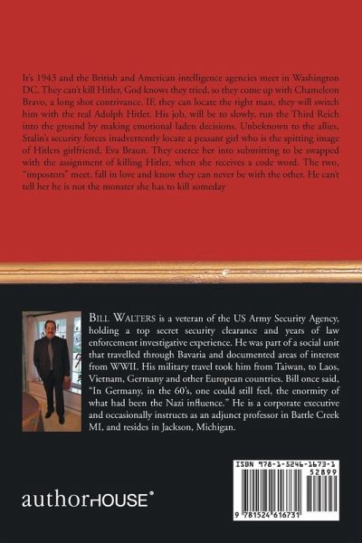It's 1943, and the British and American intelligence agencies meet in Washington, DC. They can't kill Hitler. God knows they tried, so they come up with Chameleon Bravo, a long-shot contrivance. If they can locate the right man, they will switch him with the real Adolph Hitler. His job will be to slowly run the Third Reich into the ground by making emotional-laden decisions. Unbeknown to the Allies, Stalin's security forces inadvertently locate a peasant girl who is the spitting image of Hitler's girlfriend, Eva Braun. They coerce her into submitting to be swapped with the assignment of killing Hitler, when she receives a code word. The two "impostors" meet, fall in love, and know they can never be with the other. He can't tell her he is not the monster she has to kill someday.