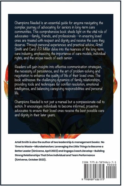 Champions Needed delivers an essential guide for families navigating the evolving landscape of long-term care. As our senior loved ones enter vulnerable phases of their lives, often unable to advocate for themselves, the responsibility increasingly falls on family members to step into the role of advocates. This book provides a powerful blueprint for active participation in critical decisions-from selecting the proper care community to managing finances and ensuring optimal healthcare services. Authored by Artell Smith and Carol J. Purdy Miller, who bring a unique blend of personal and professional insights, this book equips you with the knowledge to become a formidable advocate. It covers the intricacies of assisted living, social issues affecting seniors, and the complexities of medical and healthcare practices. Inside, you'll discover:The Advocate's Role: Understand the critical responsibilities of an advocate and the actions necessary to safeguard your loved one's health and wellness. Skills of a Champion: Explore essential skills and behaviors that enhance your loved one's quality of life and personal development, emphasizing adaptability and continuous learning. Navigating Challenges: Gain practical strategies for tackling common challenges and fostering positive relationships with caregiving providers. Champions Needed is more than a book; it's an indispensable resource with expert advice and practical tools for confidently advocating for your senior loved ones and ensuring their happiness and well-being in long-term care settings.