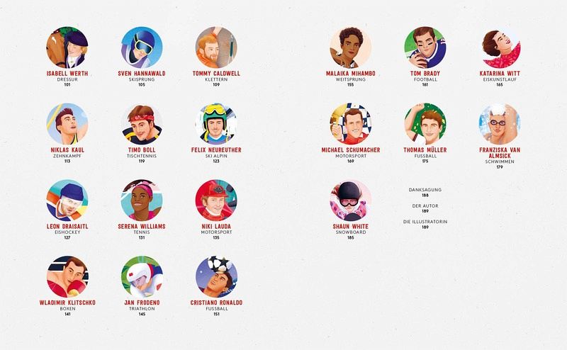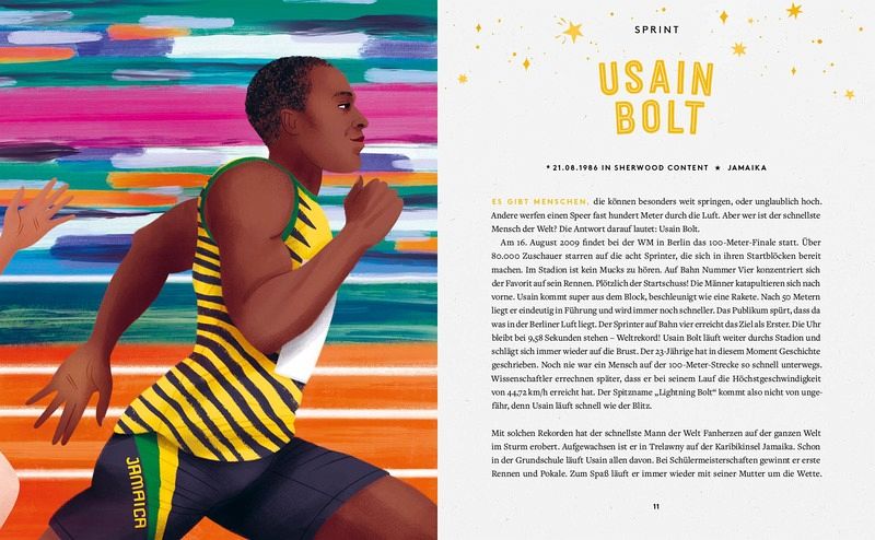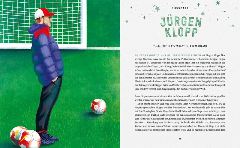 Sportbegeisterte jedes Alters kommen hier voll auf ihre Kosten: In 40 Geschichten erzählt Sven Voss bereichernde Lebensgeschichten von SportlerInnen mit besonderen Biografien. Von Basketball-Ikone Dirk Nowitzki und American Football Superstar Tom Brady über Tennis-Ausnahmeerscheinung Serena Williams und Biathlon-Star Laura Dahlmeier bis hin zur Fußballlegende Pele und Starcoach Jürgen Klopp sind alle dabei! Die Sportgeschichten dieser inspirierenden Persönlichkeiten sind nicht nur tolle Vorlesegeschichten, die Biografien ermutigen die kleinen Leser auch dazu, den Lieblingshelden nachzueifern.