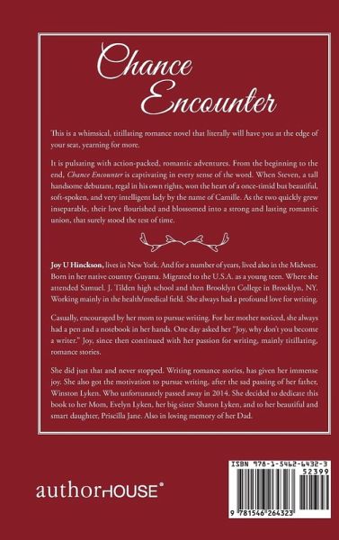 This is a whimsical, titillating romance novel that literally will have you at the edge of your seat, yearning for more. It is pulsating with action-packed, romantic adventures. From the beginning to the end, Chance Encounter is captivating in every sense of the word. When Steven, a tall handsome debutant, regal in his own rights, won the heart of a once-timid but beautiful, soft-spoken, and very intelligent lady by the name of Camille. As the two quickly grew inseparable, their love flourished and blossomed into a strong and lasting romantic union, that surely stood the test of time.