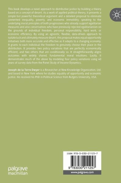 This book develops a novel approach to distributive justice by building a theory based on a concept of desert. As a work of applied political theory, it presents a simple but powerful theoretical argument and a detailed proposal to eliminate unmerited inequality, poverty, and economic immobility, speaking to the underlying moral principles of both progressives who already support egalitarian measures and also conservatives who have previously rejected egalitarianism on the grounds of individual freedom, personal responsibility, hard work, or economic efficiency. By using an agnostic, flexible, data-driven approach to isolate luck and ultimately measure desert, this proposal makes equal opportunity initiatives both more accurate and effective as it adapts to a changing economy. It grants to each individual the freedom to genuinely choose their place in the distribution. It provides two policy variations that are perfectly economically efficient, and two others that areconditionally so. It straightforwardly aligns outcomes with widely shared, fundamental moral intuitions. Lastly, it demonstrates much of the above by modeling four policy variations using 40 years of survey data from the Panel Study of Income Dynamics.